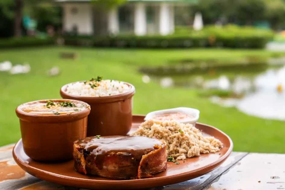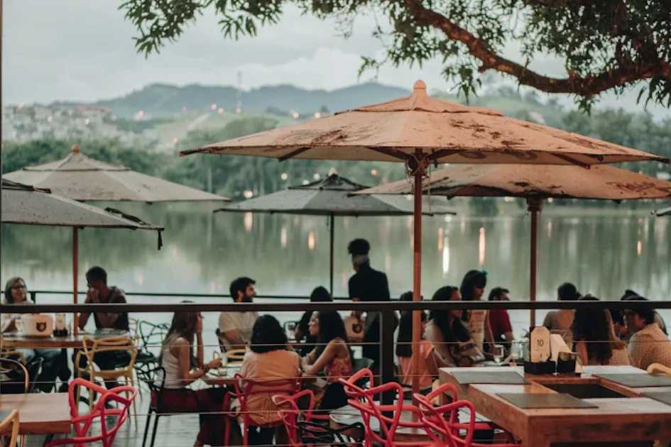 O menu mescla pratos da culinária mineira com toques contemporâneos, oferecendo opções à la carte e self-service, além de bebidas variadas, incluindo drinks, vinhos e cervejas artesanais. O restaurante também é um ponto privilegiado para observação do lago e dos belos cenários naturais à noite, com uma atmosfera romântica e relaxante.