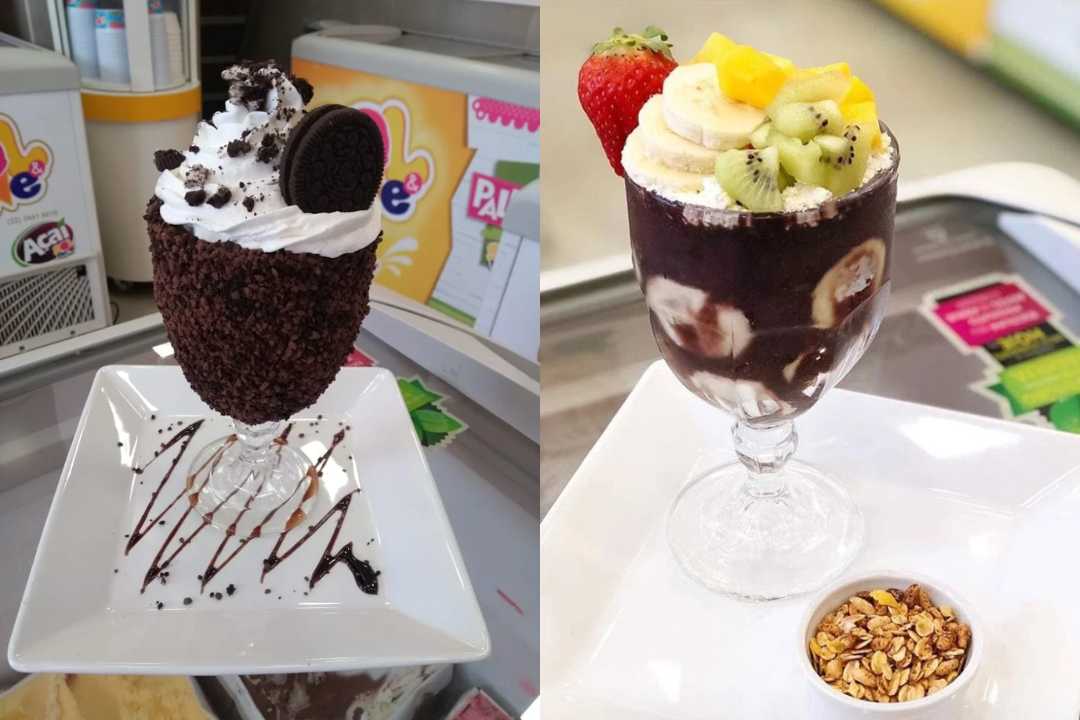 A sorveteria conta com sorvetes variados, milk shakes, açaí, taças especiais e outras sobremesas.